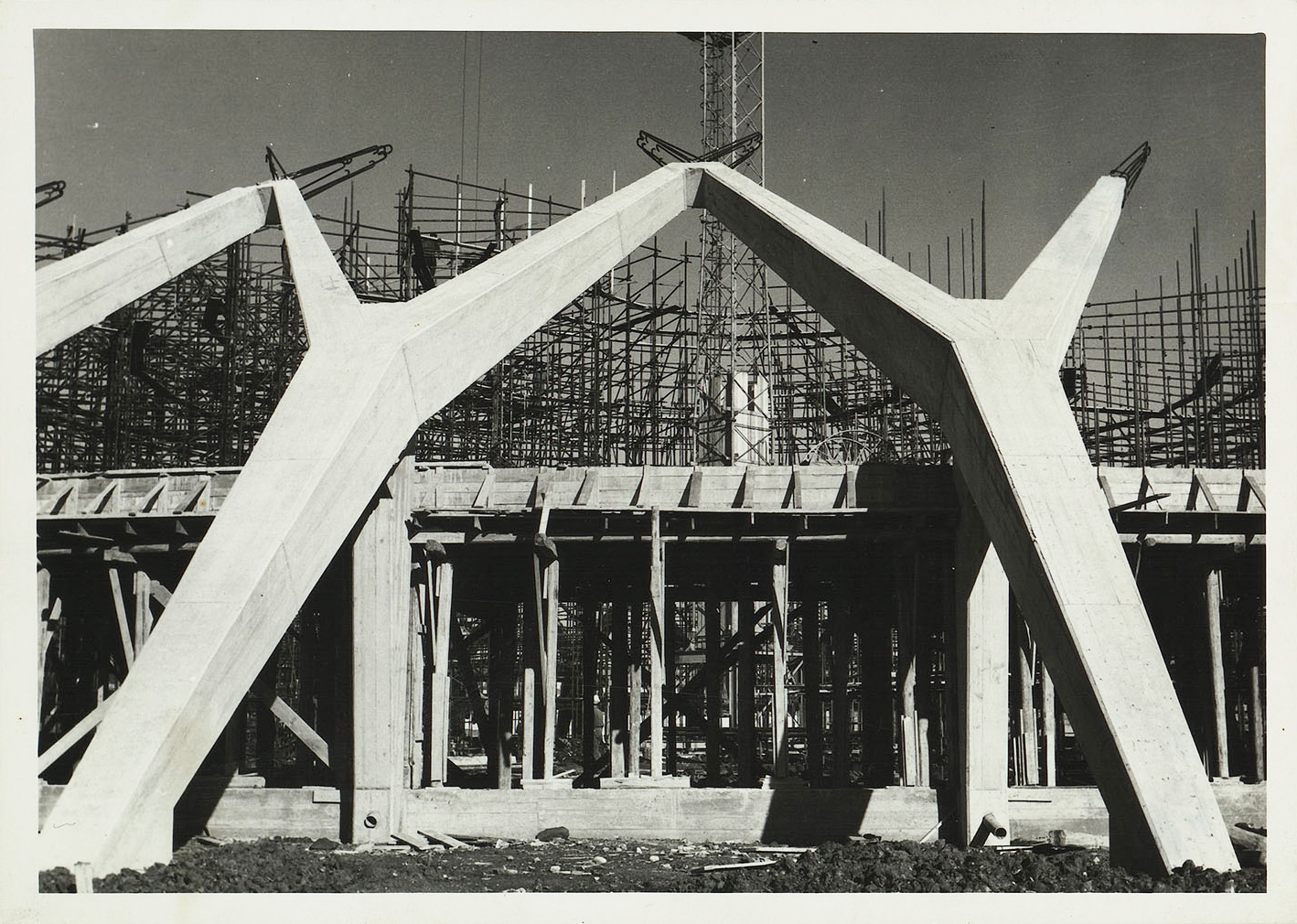 Con il cemento armato ordinario sarebbe troppo costosa da realizzare, perché occorrerebbe una cassaforma di legno molto complicata. Nervi, invece, divide la struttura in tanti tavelloni romboidali, di pochi tipi diversi, che accostati, come i pezzi di un puzzle, restituiscono il disegno complessivo.